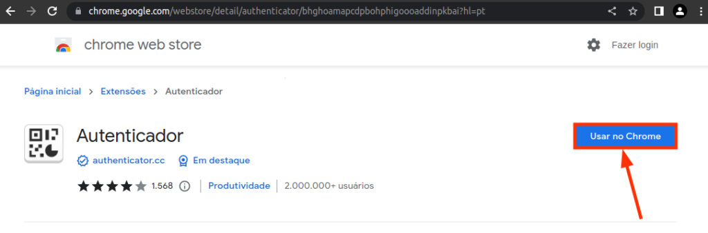 1 – Para instalar a extensão acesse o Chrome Web Store – Autenticador.