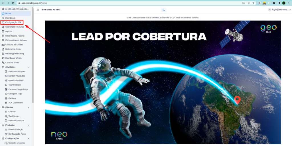 13 – No menu lateral, clique em Configurar 2FA.