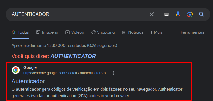 Ou pesquise no Google “Autenticador Chrome”