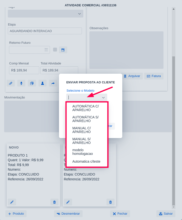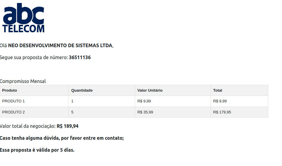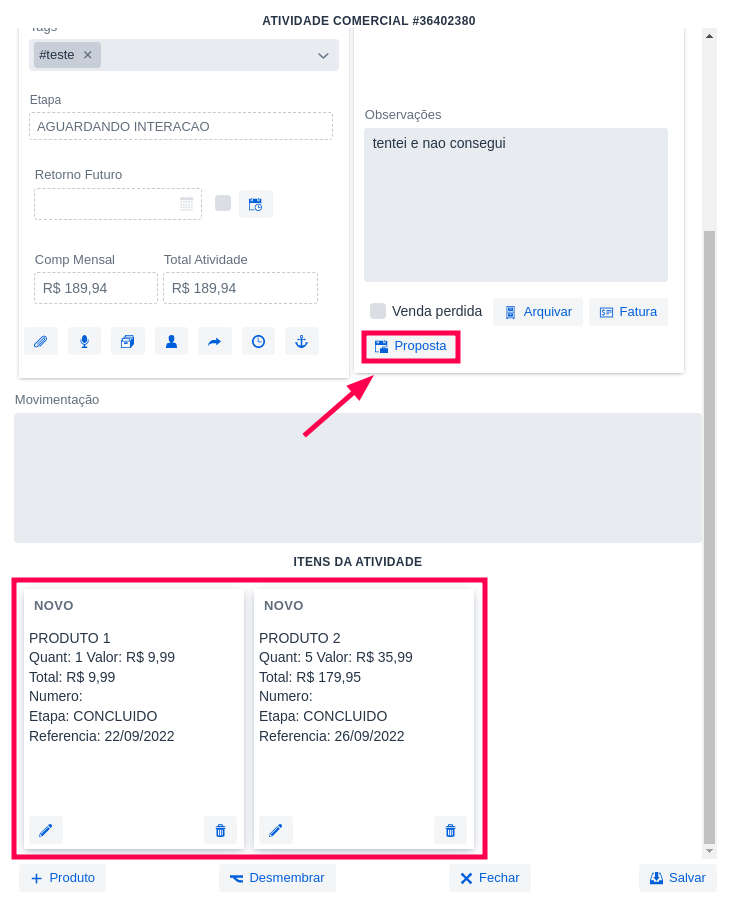 1 – Com os itens devidamente cadastrados clique em Proposta.