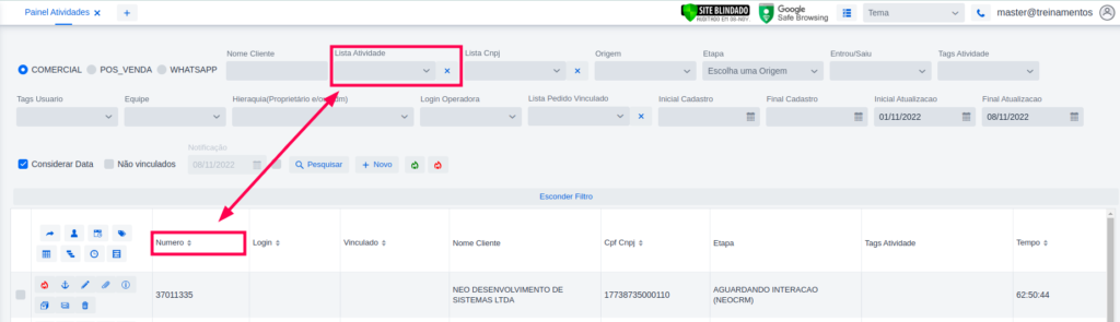 3 – Lista Atividade: Pesquisa pelo numero atividade.