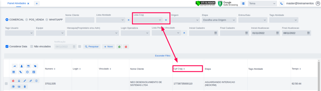 4 – Lista Cnpj: Pesquisa pelo Cnpj do cliente.